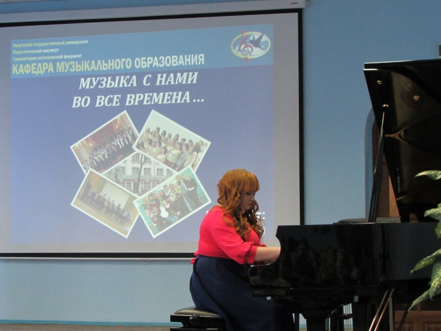 Концерт предварила презентация кафедры музыкального образования, а затем студентка 3 курса Елена Ключерёва исполнила пьесу Игоря Шамо «Тройка» (класс к.психол.наук, доцента Л.Г. Ушаковой).